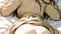 NSFW, adult woman, brown hair, permed hair, moaning in pleasure, soft colors, suggestive atmosphere, hand-drawn feel, soft pencil lines, slightly rough line art, traditional anime style, bedroom, lying on a bed, naked, riding on top of him, penis thrusting deep into her vagina, blurred background, shallow depth of field,